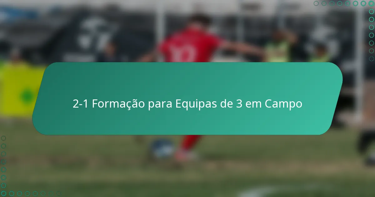 A formação 2-1 é uma configuração tática comumente utilizada no futebol 3-a-side, apresentando dois defensores e um avançado. Este arranjo permite que as equipas mantenham uma estrutura defensiva sólida enquanto proporcionam oportunidades para contra-ataques.