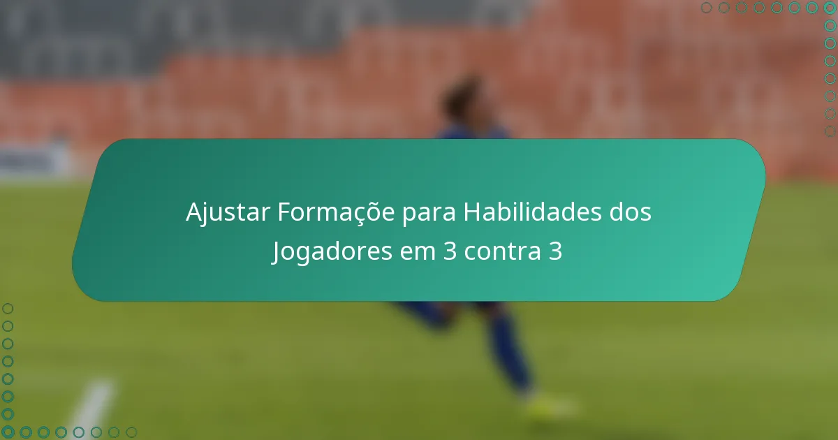 Ajustar as formações com base nos pontos fortes dos jogadores envolve avaliar habilidades individuais e posicioná-los de forma eficaz dentro da equipa. Esta abordagem melhora o desempenho geral ao aproveitar as habilidades únicas de cada jogador, garantindo uma estratégia equilibrada e adaptável durante os jogos.