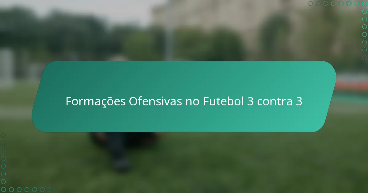 O futebol 3-a-side é uma variação dinâmica e rápida do jogo tradicional, onde equipas de três jogadores devem aproveitar a habilidade e o trabalho em equipa num espaço limitado. Formações ofensivas chave, como 1-2, 2-1 e 3-0, desempenham um papel vital na melhoria das estratégias ofensivas e na criação de oportunidades de golo. A comunicação eficaz e os papéis definidos dos jogadores são essenciais para que as equipas adaptem as suas táticas e maximizem o seu potencial ofensivo.