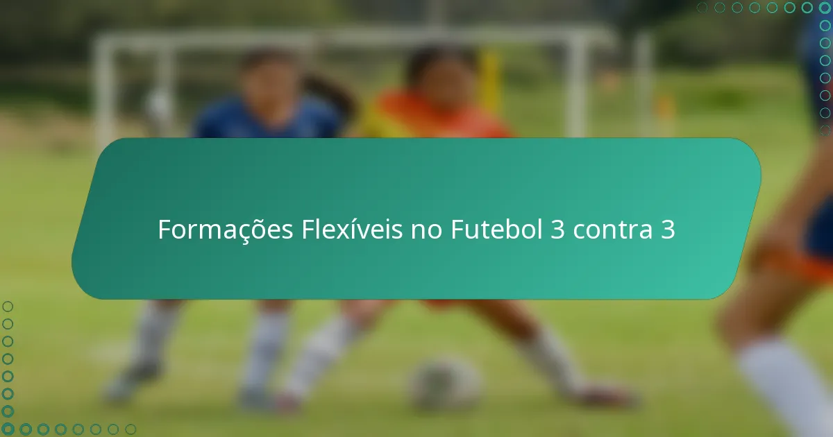 As formações flexíveis são arranjos táticos que podem mudar com base nas circunstâncias do jogo, como a estratégia do adversário ou o resultado atual. No futebol 3 contra 3, onde o espaço é limitado e os papéis dos jogadores podem sobrepor-se, estas formações permitem ajustes rápidos para manter uma vantagem. Os jogadores podem alternar entre papéis ofensivos e defensivos de forma fluida, dependendo da situação.