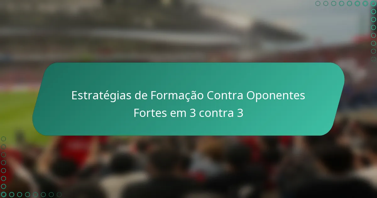 Num jogo de três contra três contra adversários fortes, formações eficazes são essenciais para aproveitar as forças da equipa enquanto se minimizam as fraquezas. Utilizar configurações como o 1-2 e o 2-1 pode proporcionar vantagens distintas, mas definir papéis claros para os jogadores é crucial para manter o equilíbrio e maximizar as oportunidades de golo. Ao empregar posicionamento tático e transições rápidas, as equipas podem explorar as vulnerabilidades dos seus adversários e adaptar-se à natureza dinâmica do jogo.