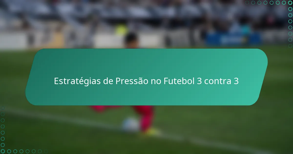 A pressão no futebol 3-a-side é uma abordagem tática vital onde os jogadores exercem pressão sobre a equipa adversária para recuperar a posse rapidamente. Esta estratégia é particularmente eficaz em formatos menores, pois perturba o jogo do adversário e abre oportunidades de golo. Ao empregar táticas como a pressão alta e a contra-pressão, as equipas podem influenciar significativamente o resultado do jogo.