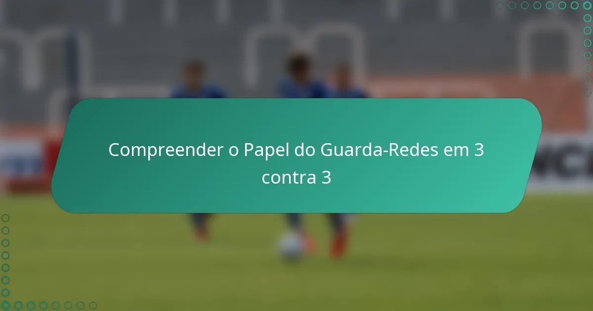 O guarda-redes no futebol 3-a-side é essencial tanto para a defesa como para a dinâmica da equipa, exigindo um conjunto de habilidades únicas adaptadas ao ambiente acelerado. Com um campo menor e menos jogadores, o guarda-redes deve ser ágil e proativo, muitas vezes saindo da área de baliza para participar no jogo. A comunicação eficaz e a tomada de decisões rápidas são vitais para apoiar a equipa tanto defensivamente como ofensivamente.
